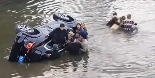 时值深冬,河水刺骨,但何银保没有片刻迟疑,脱了衣服、鞋子便往下跳。“我跳下去后,立马砸车门。当时,一个游客紧跟着我也下去了,我们俩一直砸,但是砸不开。后来,很多居民、商户都赶来了。大家齐心协力把车翻过来,用钢筋把窗户砸开。”何银保回忆。